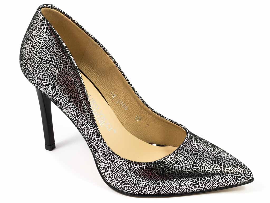 Czółenka Arturo Vicci 3700 Silver Lace 643 - srebrno czarne lico