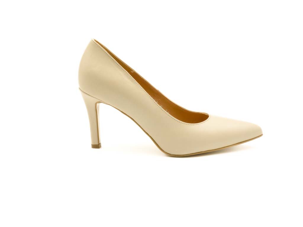 Szpilki firmy Acord, obcas stabilny, średniej wysokości 8 cm obciągnięty skórą. Dodatkową zaletą tego modelu jest skórzana wyściółka, która zapewnia wysoki komfort noszenia. Buty zostały wykonane z naturalnej licowej skóry w klasycznym złotym kolorze. Czółenka są obszyte nicią, co nadaje im lekkości i powabności. Szpilki idealnie sprawdzą się na wyjątkową okazję jako dopełnienie stylizacji oraz codziennej pracy w biurze.