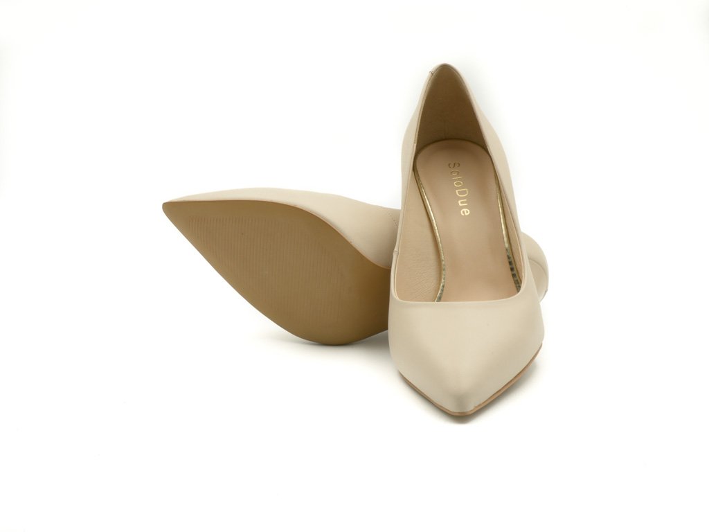 Buty Solo Due to zawsze modne szpilki o klasycznym fasonie w wyjątkowym odcieniu beżu. Obuwie wykonane jest z naturalnej, wysokiej jakości skóry licowej. Dobrze wyprofilowany oraz stabilny obcas, o optymalnej, średniej wysokości 7,5 cm, zapewnia komfort podczas chodzenia, dzięki czemu nie poczujesz zmęczenia nawet po całym dniu.