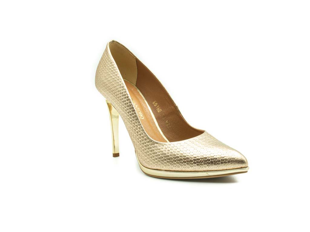 Czółenka Giulio Santoro by Presto P-9103-P złoty lico satyna